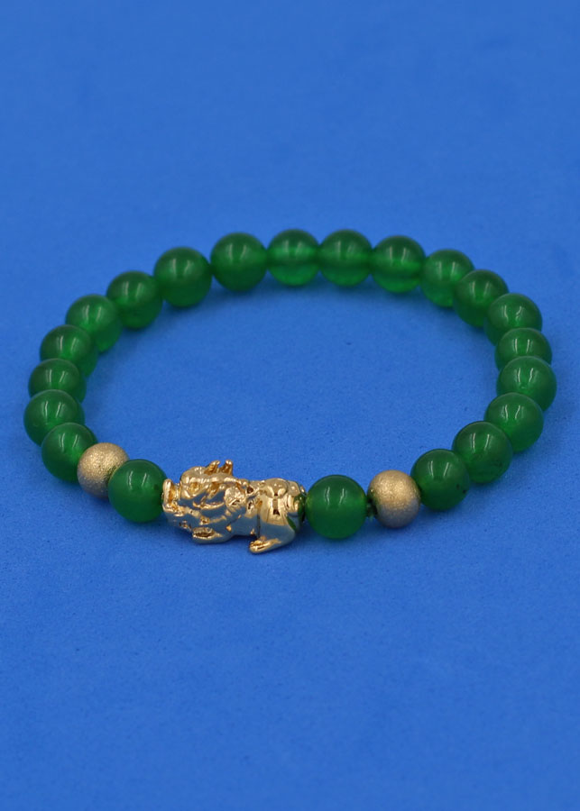 ✨Vòng đeo tay Thạch Anh Xanh Lá 6 ly cẩn Tỳ Hưu inox vàng VTAXLTHHBV6 - hợp mệnh Hỏa, mệnh Mộc