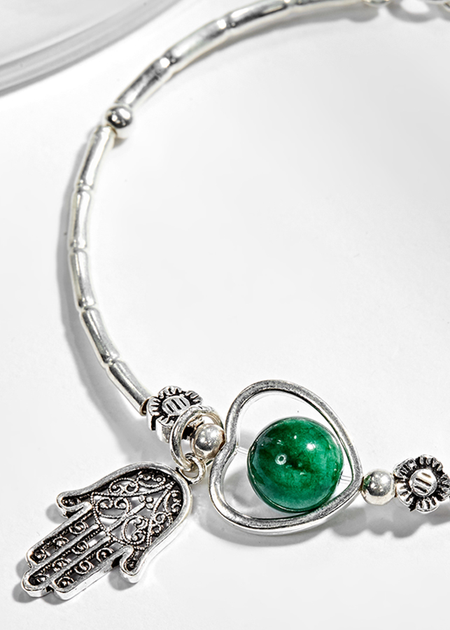 Vòng Tay Bạc 1 Hạt Đá Cẩm Thạch Phối Charm Bàn Tay Hamsa Bạc