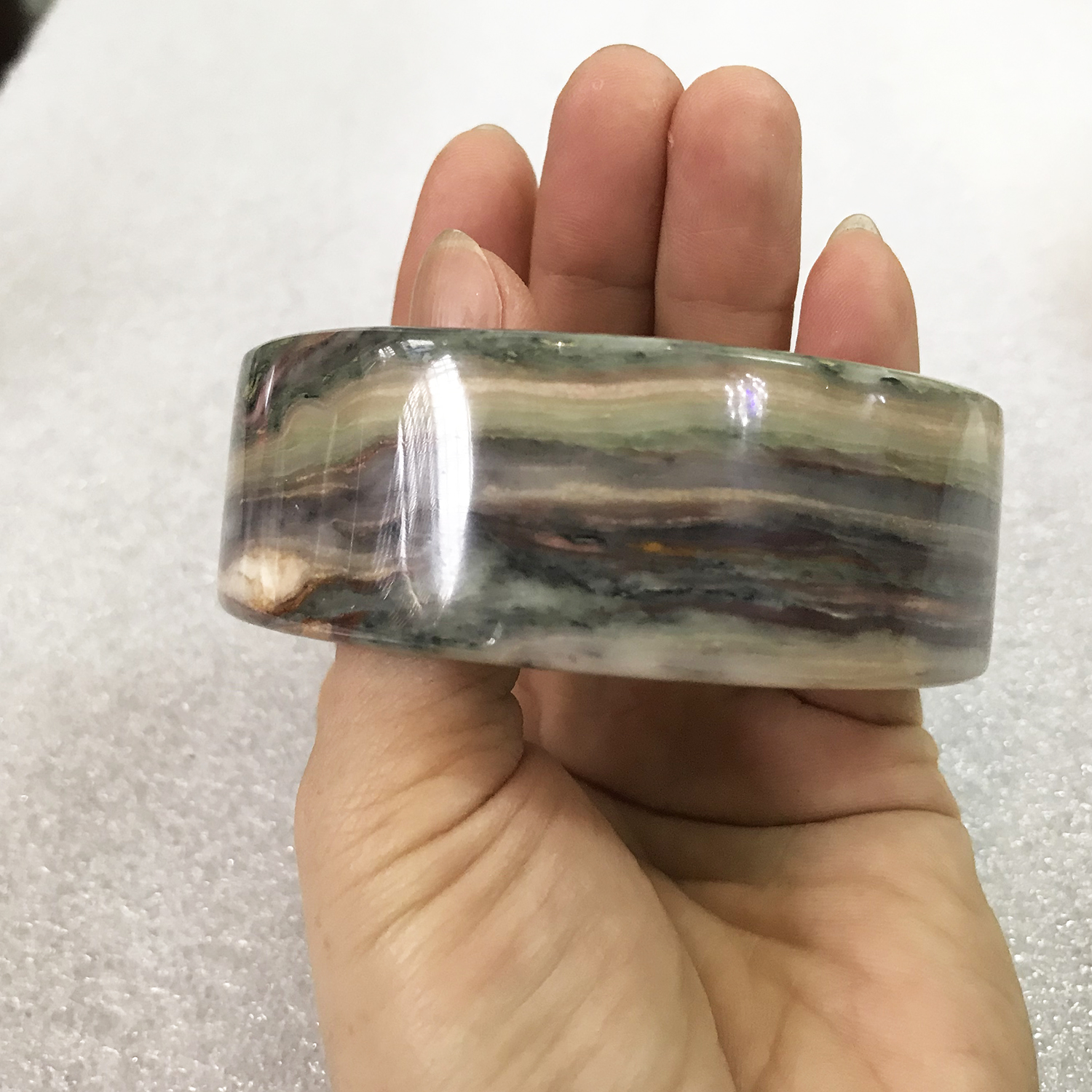 1.Chất: Đá ngọc Serpentine xanh lá nhạt 100% đá tự nhiên khai thác và chế tác tại Việt Nam, màu sắc đẹp y như hình 2. Kích thước: Chiều cao của vòng là 2.5-2.9 cm.