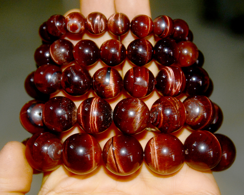 Vòng tay chuỗi đá mắt hổ đỏ -Giống như mắt hổ màu vàng thường thấy,nhưng màu đỏ sẽ cho cảm giác mạnh mẽ hơn.