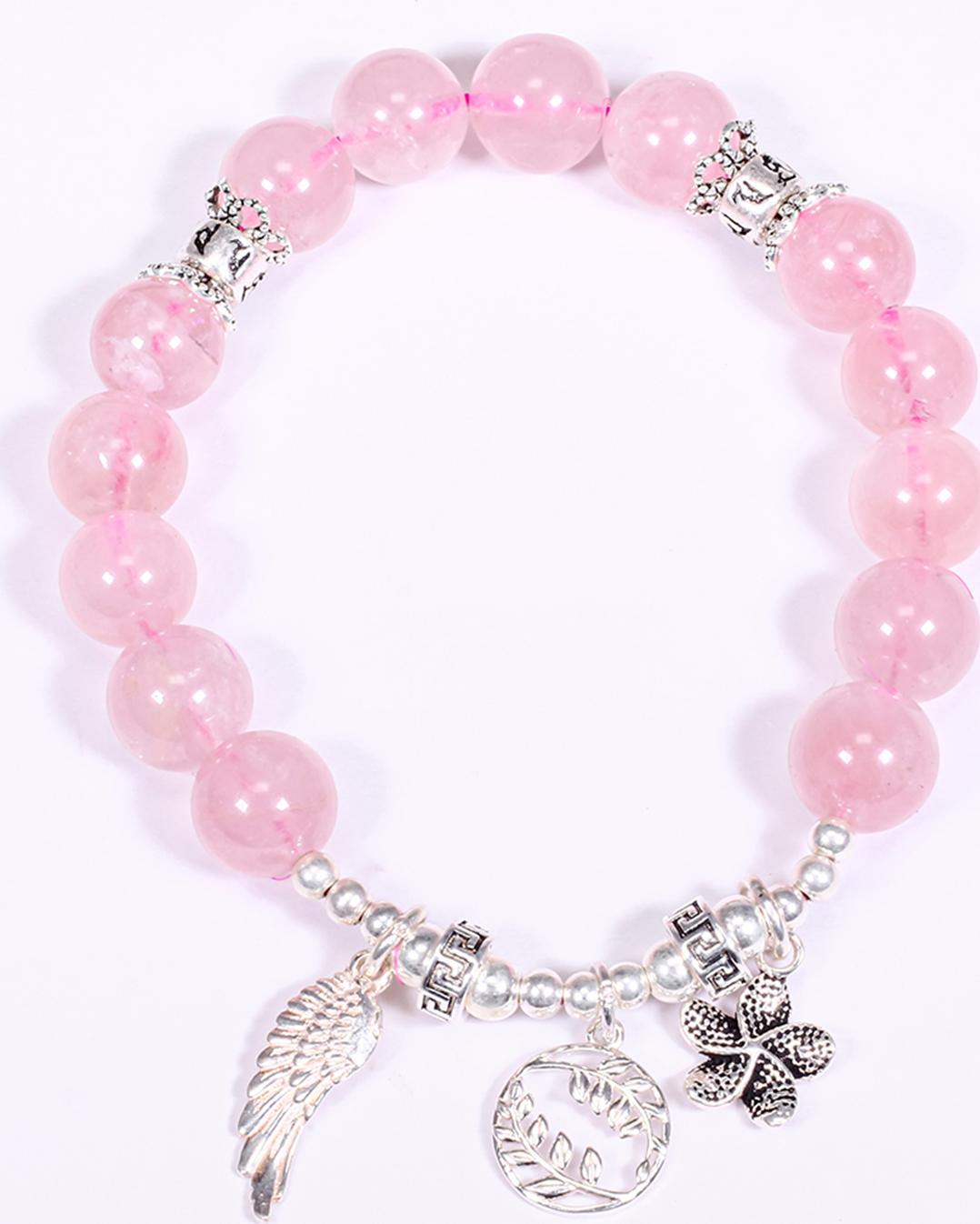 Vòng tay đá thạch anh hồng phối charm bạc - Hợp mệnh hỏa, thổ | Ngọc Quý Gemstones |