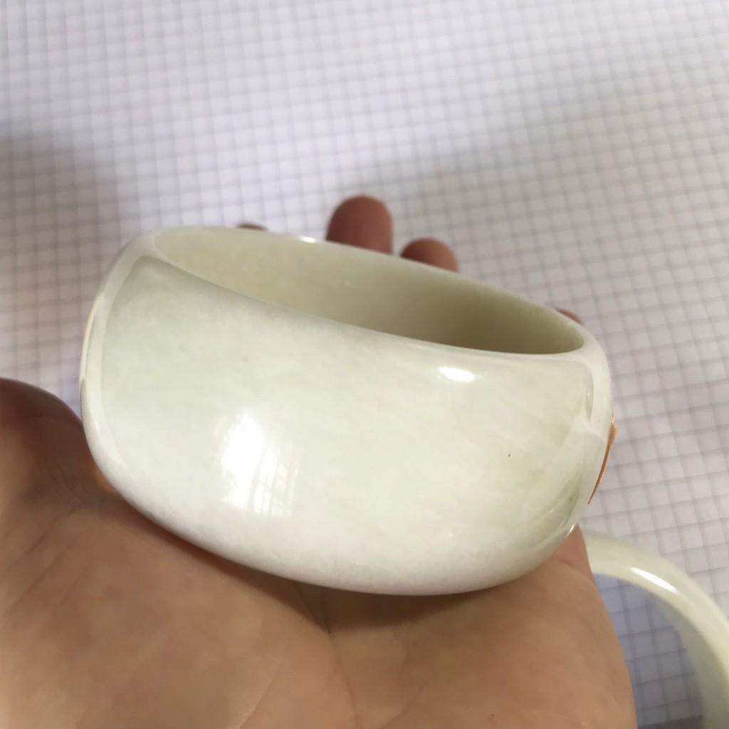 Vòng tay Nữ Đá Cẩm Thạch mới TR Lý 57 mm x cọng 7,5mm Màu Xanh lý tươi trắng 2 bên đều vòng đẹp Nữ 55kg - 64kg đeo đẹp món quà tặng chính mình
