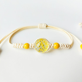 Chất liệu: Dây vòng tay thuộc dây dù, hoa khô kiểu dáng VÒNG TAY HOA KHÔ BONG BÓNG THỦY TINH