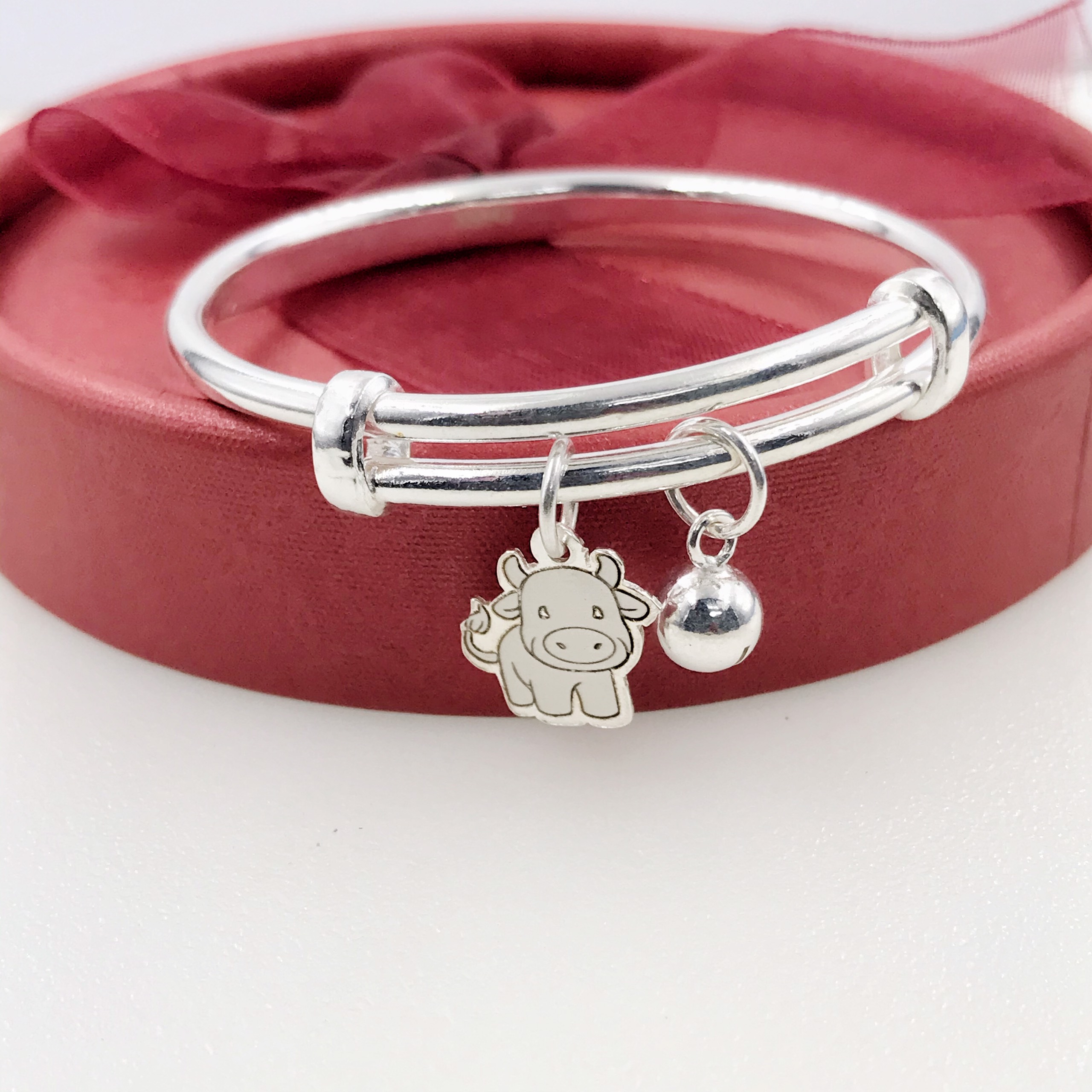 ✨Vòng Tay Lắc Tay Cho Bé Bạc S99 Nguyên Chất Chuông Bóng Và Bé Trâu LTE522 Điều Chỉnh Size