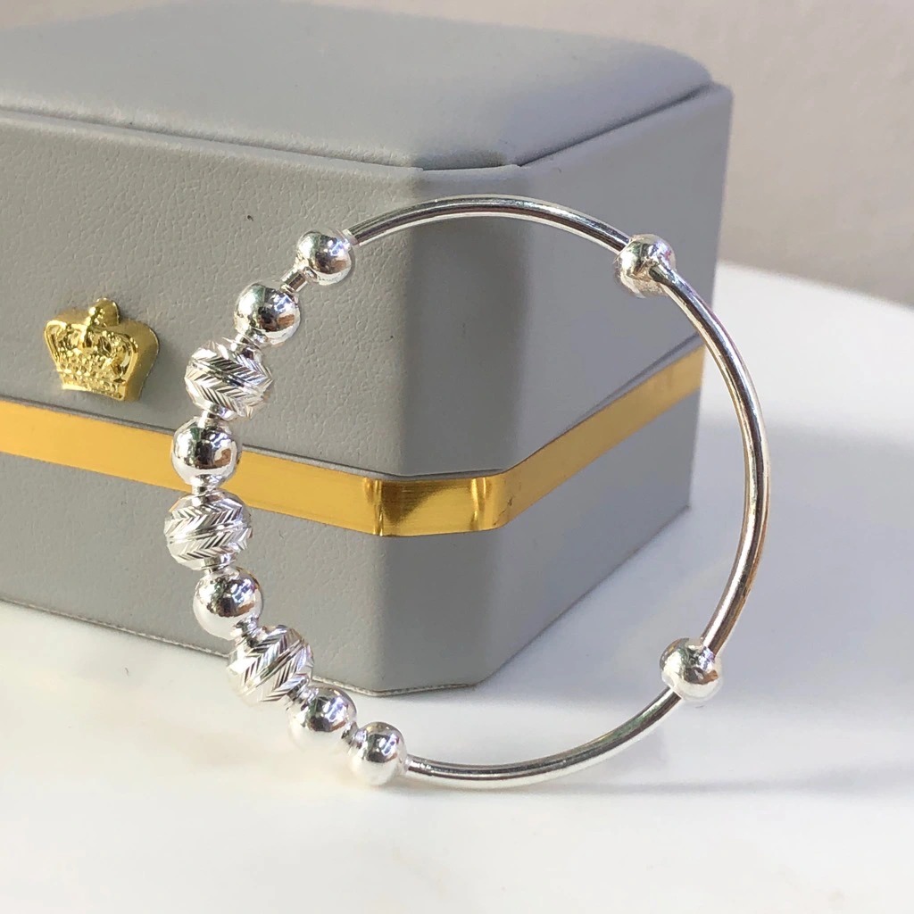 Vòng Tay Lắc Tay Cho Bé Bạc Ta Hình Bi Phay Free Size BẠC HIỂU MINH LTE530