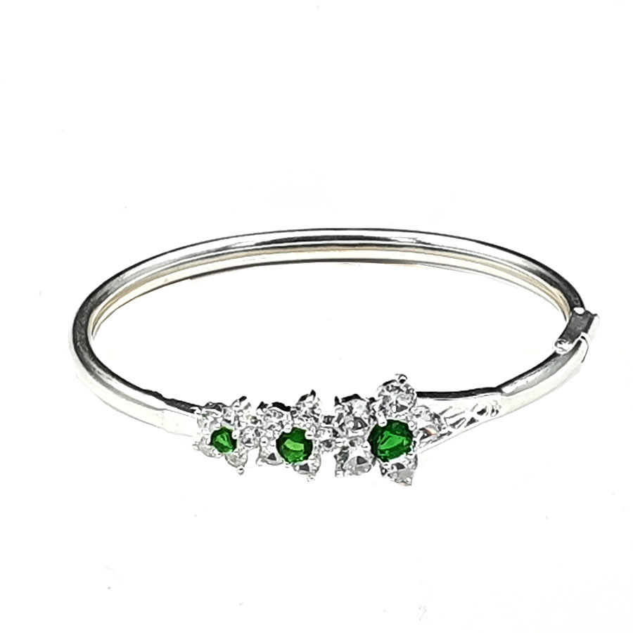 Vòng , Lắc Tay Nữ BẠC HIỂU MINH LTU315 Dạng Kiềng Hoa Đá Xanh Lấp Lánh
