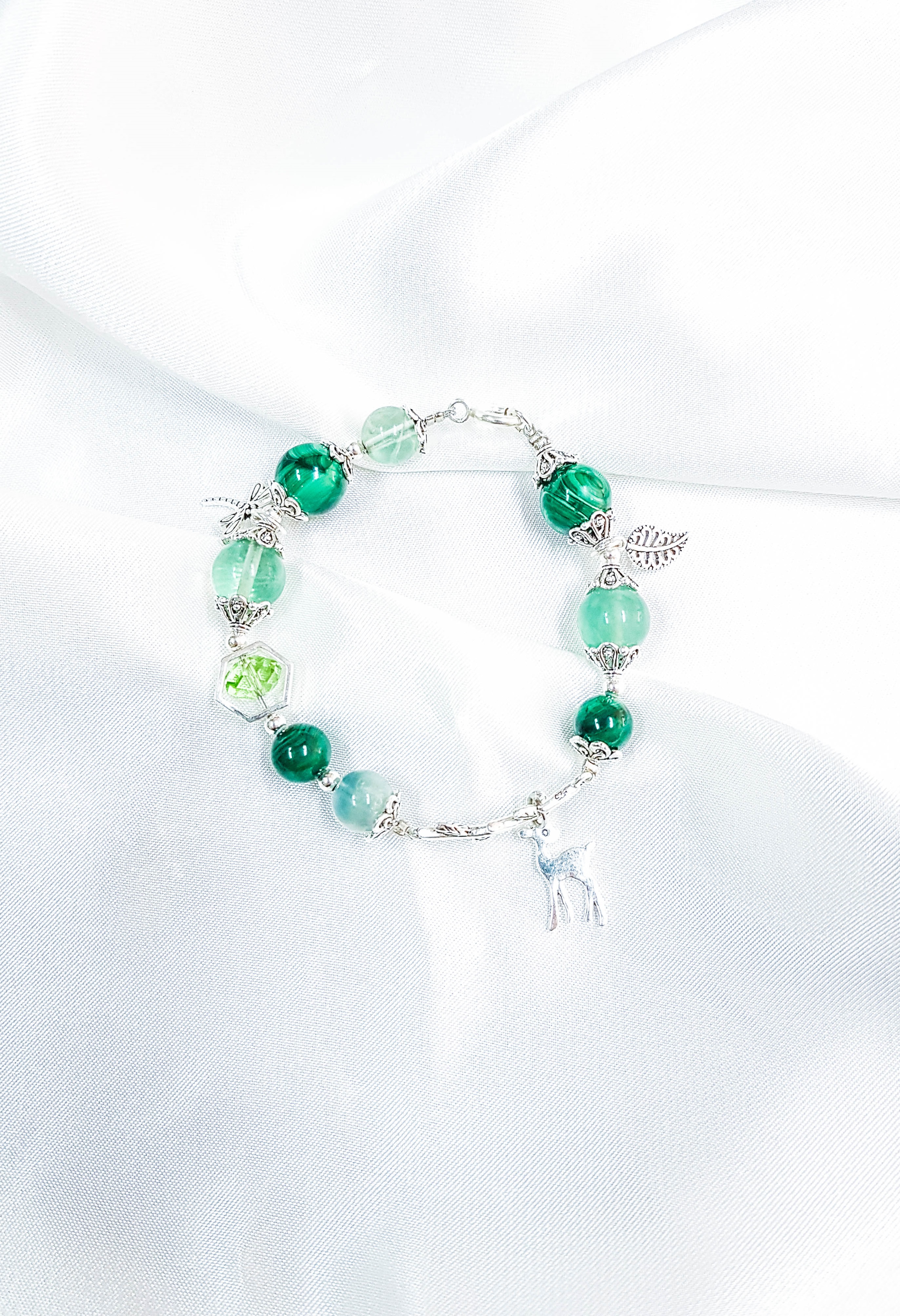 Vòng Thạch Anh Ưu Linh Xanh Phối Hoa Thạch anh xanh Đá Thạch Anh Xanh (Green Aventurine) còn được gọi là “Đá của Cơ Hội”, nó được cho là loại đá mang lại may mắn