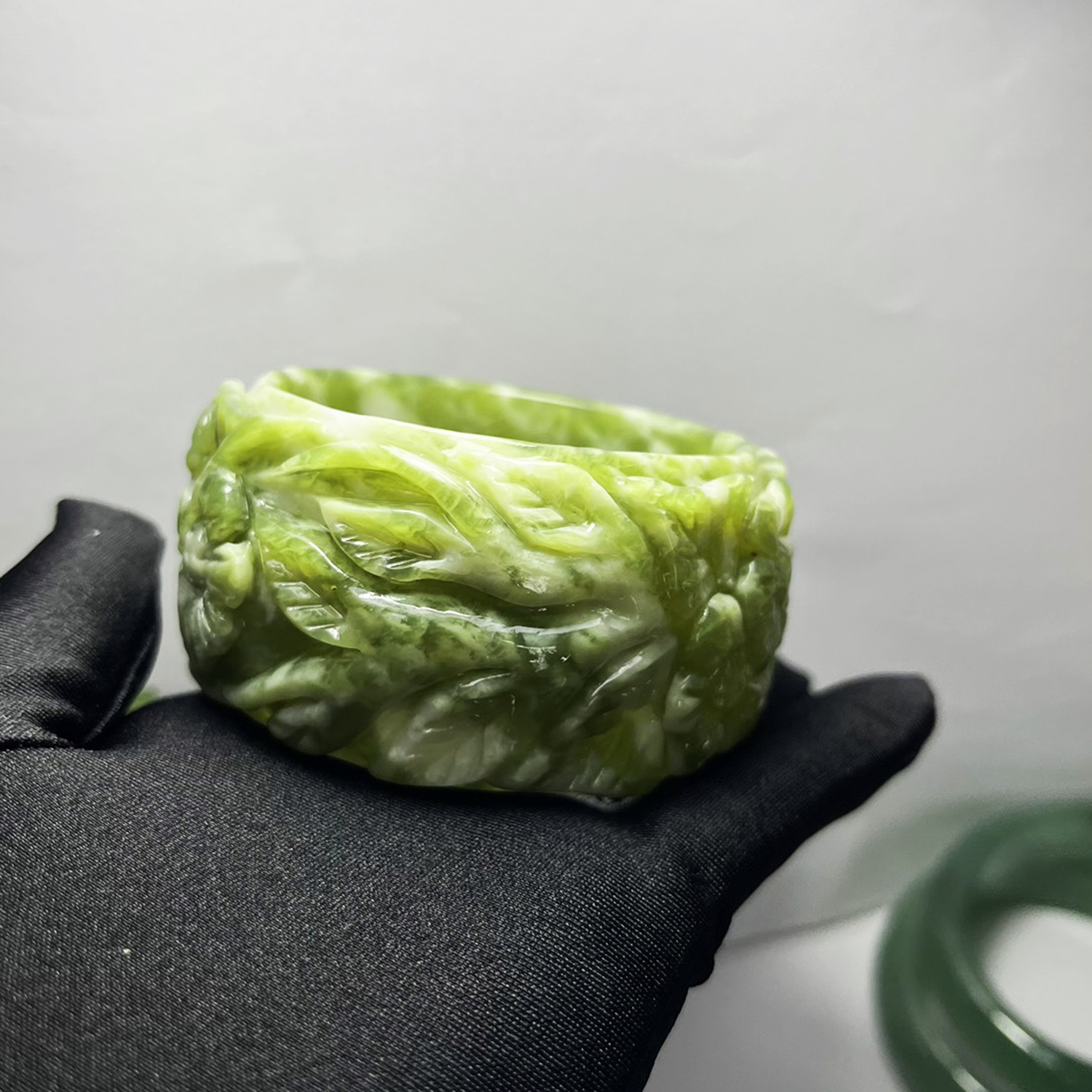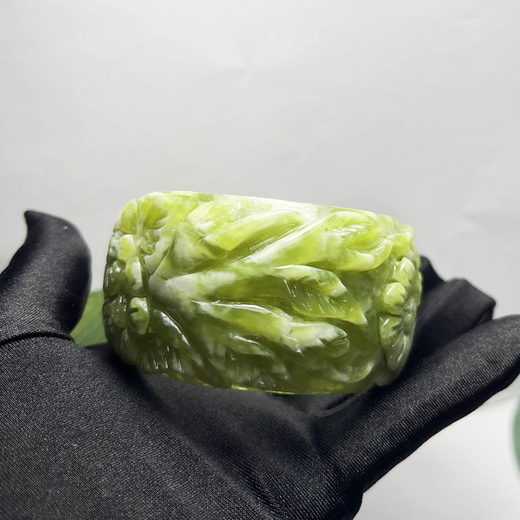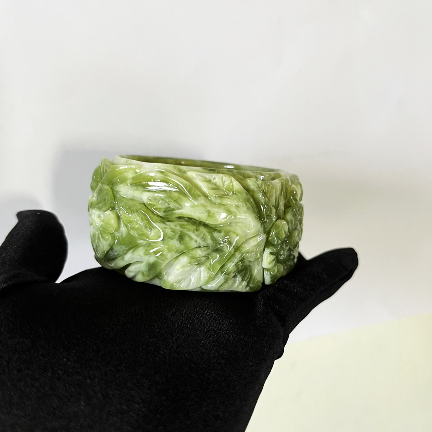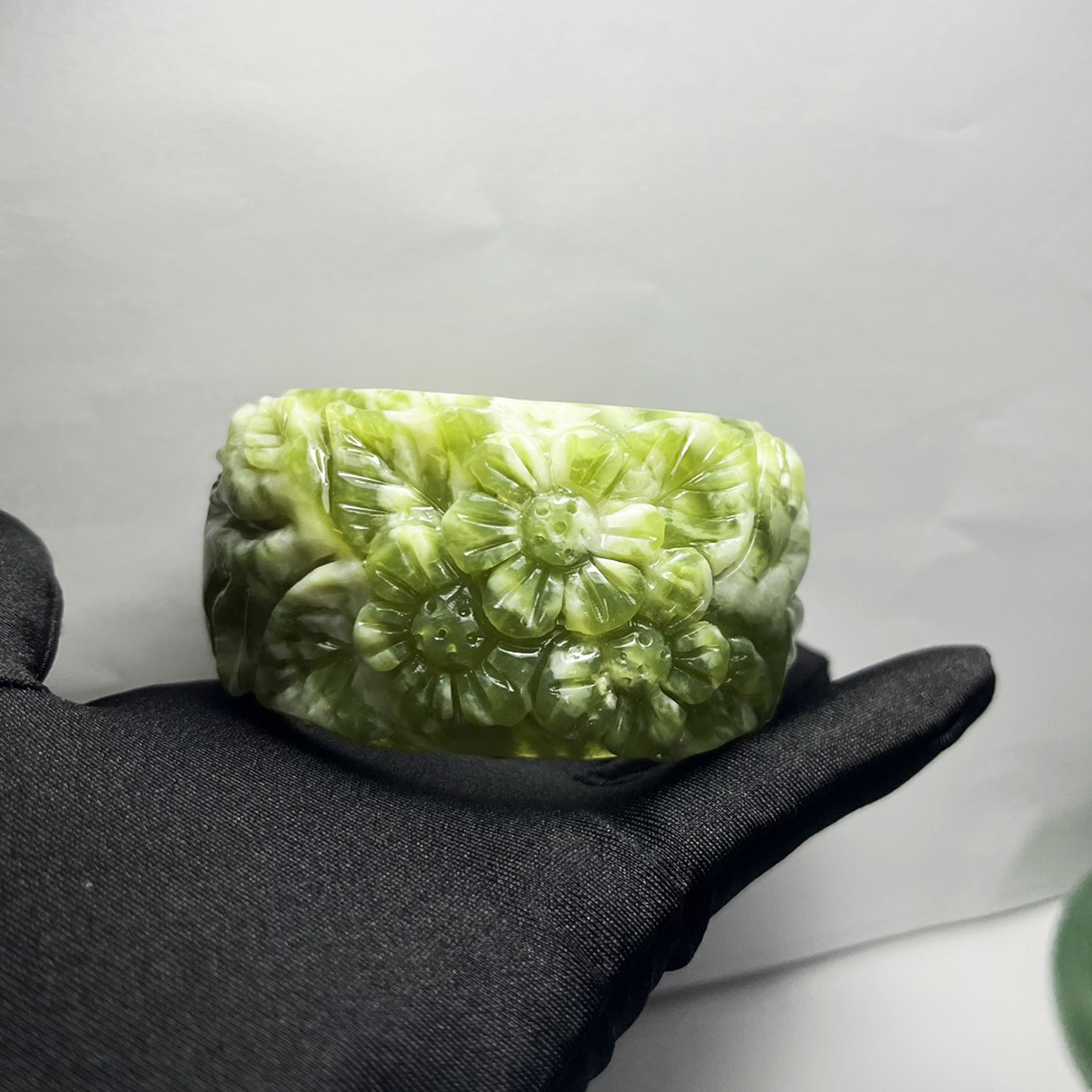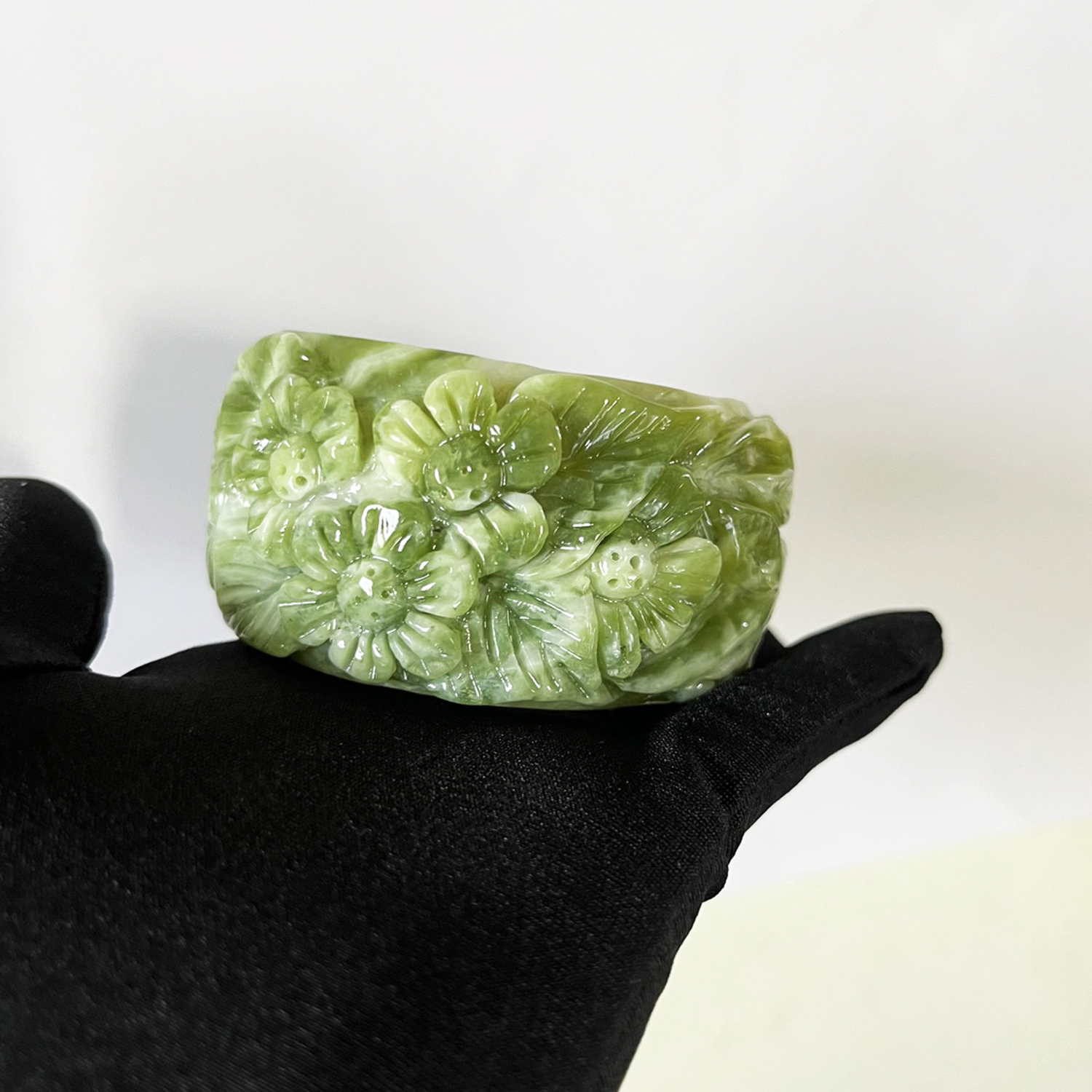 ✨Vòng tay ngọc chạm hoa bản cối size 5.4cm của Xưởng chế tác Đá Phong Thủy Mỹ Nghệ An An