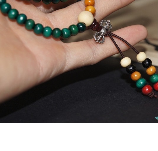 ✨Vòng tay ngũ sắc, phong cách phật giáo, 108 hạt, gỗ tự nhiên 100%, Kèm túi đựng Cung hỷ