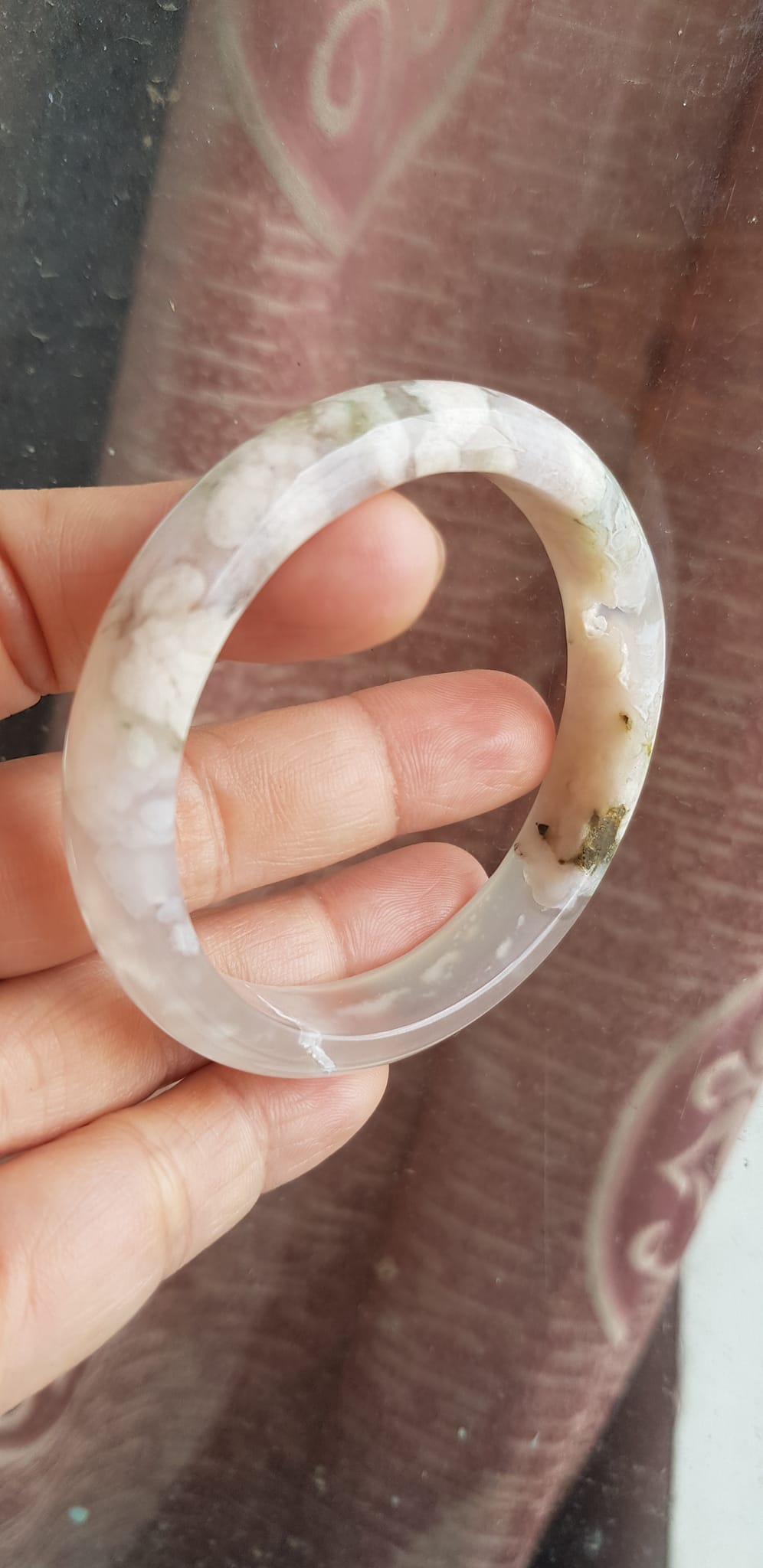Vòng tay phong thuỷ Nữ Bản Hẹ Đá Mã Não Trắng trong vân hoa đẹp Vòng màu trắng trong Ni 50mm x Cao 12mm x dầy 6,5mm Hợp nữ mệnh kim mệnh Thủy ạ Sản