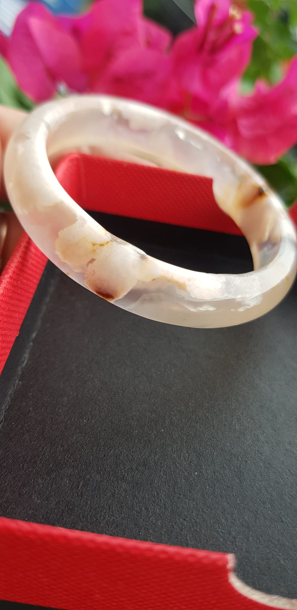 Vòng tay Nữ Bản Hẹ Mới Đá Mã Não Bông Tuyết Hồng nhẹ trắng trong bóng đẹp Ni 53mm 52kg-55kg SUNNY Q8