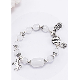 Vòng Tay Phong Thủy Nữ Đá Thạch Anh Ưu Linh Trắng Phối Charm Kỳ Lân Bạc (8mm) Mệnh Kim, Thủy