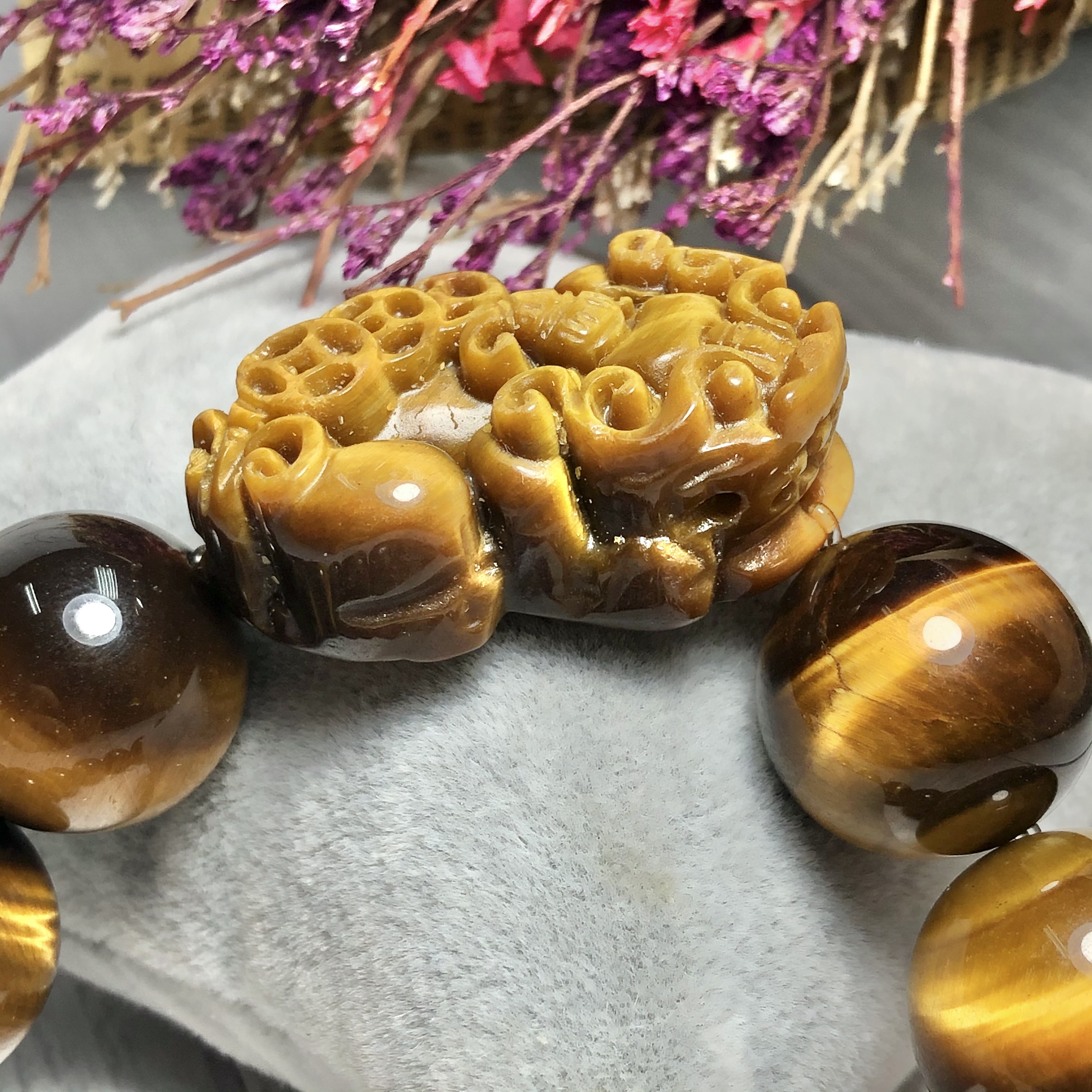VÒNG TAY ĐÁ MẮT HỔ VÀNG NÂU CHARM LÁ: Đá Mắt Hổ có tên khoa học là Tiger Eye, là một loại tinh thể biến chất có màu sắc từ vàng, nâu đỏ đến xanh