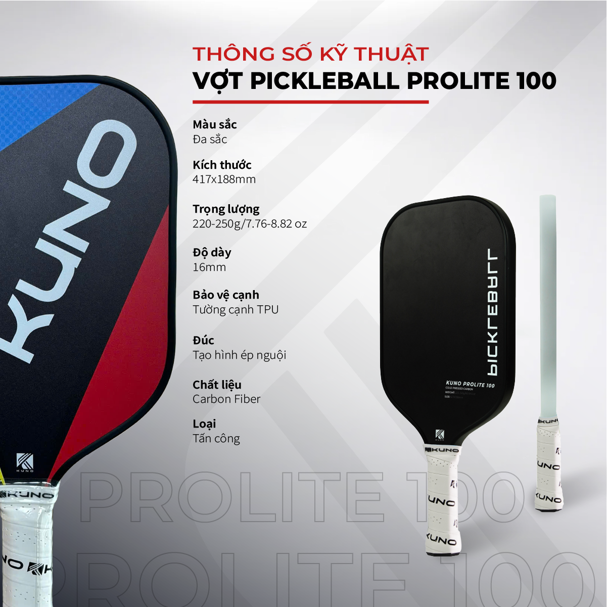 - Tên sản phẩm: Vợt Pickleball Kuno Prolite 100