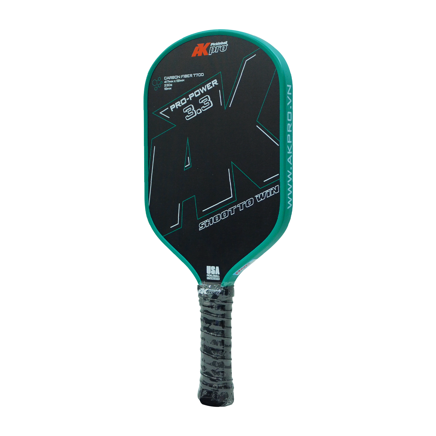 Mã sản phẩm: PRO-POWER 3.3Chiều rộng mặt vợt: 191mmChiều dài tổng thể: 417mmCán vợt dài: >140mmĐộ dày mặt vợt: 16mmTrọng lượng: 230 gramVật liệu bề mặt: Carbon T700 liền miếng cao cấpVật liệ...