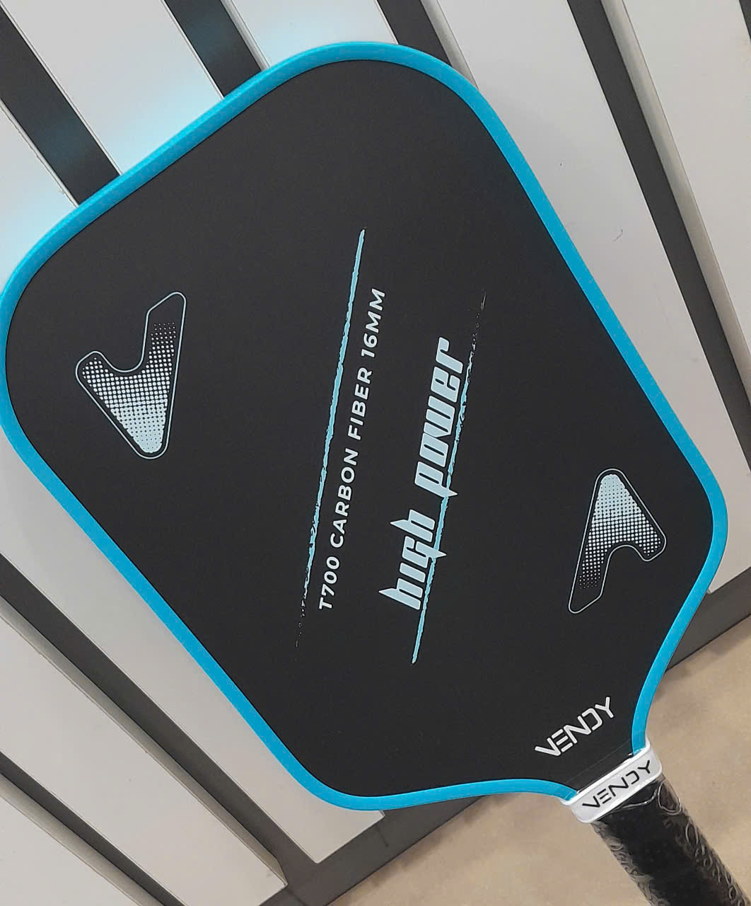 VỢT PICKLEBALL VENDY SUPER POWER Mặt vợt được làm từ 3 lớp carbon T700 và 1 lớp sợi thủy tinh với độ nhám phù hợp, tạo ra 1 bề mặt cực chuẩn, giúp xử lý