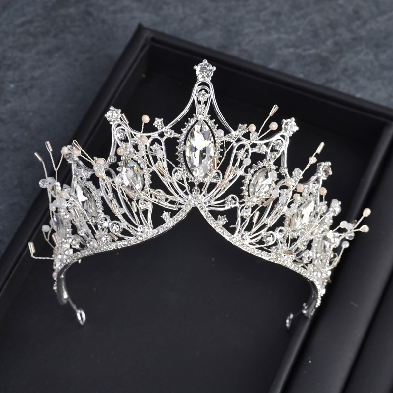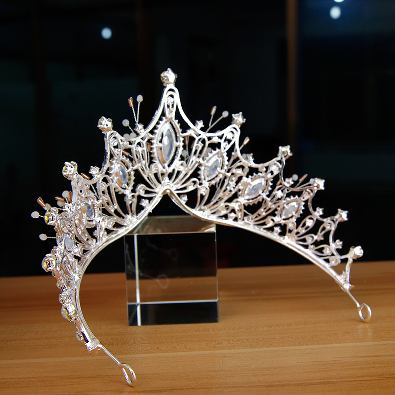 Vương miện đính đá lấp lánh cô dâu sang trọng tinh tế. Thiết kế đính đá lấp lánh phản chiếu ánh sáng qua từng góc nhìn, mạ bạc sáng bóng bền màu. Thích hợp trang