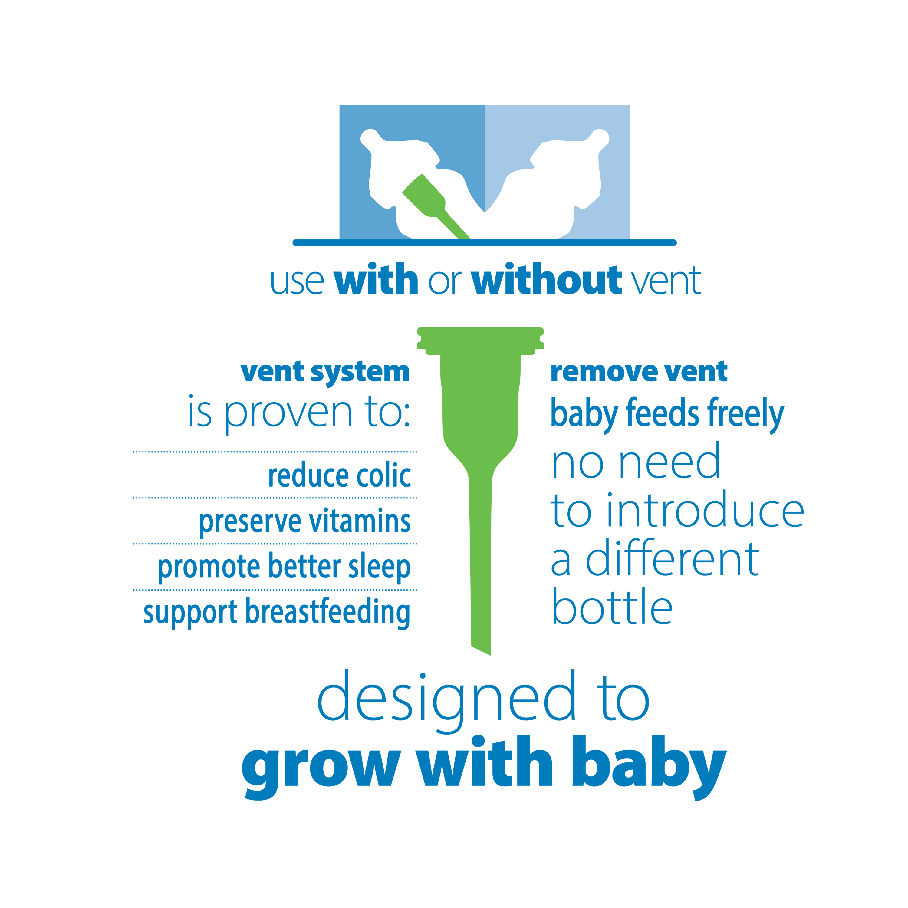 - Dr.Brown’s khuyến nghị các mẹ cho trẻ dưới 6 tháng tuổi thì nên sử dụng hệ thống van khí trong bình sữa để đảm bảo bé nhận được đầy đủ chất dinh dưỡng và sức khoẻ tốt nhất, vì nếu không lắp hệ thống van thì không thể giảm đầy hơi, dẫn đến đau thắt dạ dày, ăn không đủ no, làm suy hao vitamin v.v... bình sữa lúc này chỉ có tính năng chống sặc sữa, và không làm sẹp núm ty