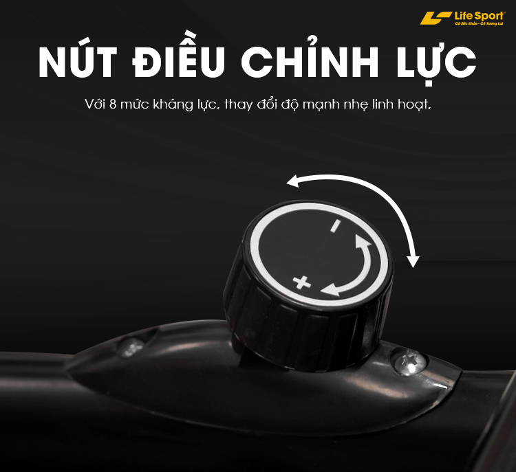 Xe đạp tập với 8 mức kháng lực, thay đổi độ mạnh nhẹ linh hoạt, hỗ trợ luyện tập với cường độ lớn, tăng khả năng tiêu hao calo hơn. Kháng lực thủ công thiết kế vị trí thuận tiện, dễ dàng điều chỉnh ngay cả khi đang đạp xe.
