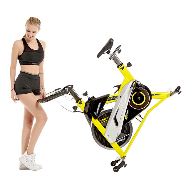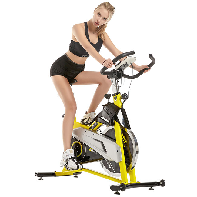 + sử dụng hệ thống truyền động bằng bánh đà đặc có trọng lượng lên đến 13kg kết hợp với dây curoa nên giúp đạp xe êm hơn, ít phải bảo dưỡng khi sử dụng lâu ngày. Đặc biệt, xe còn có bộ phận điều chỉnh mức độ nặng nhẹ khi đạp giúp phù hợp cho nhiều đối tượng và nhiều mục đích tập luyện khác nhau.