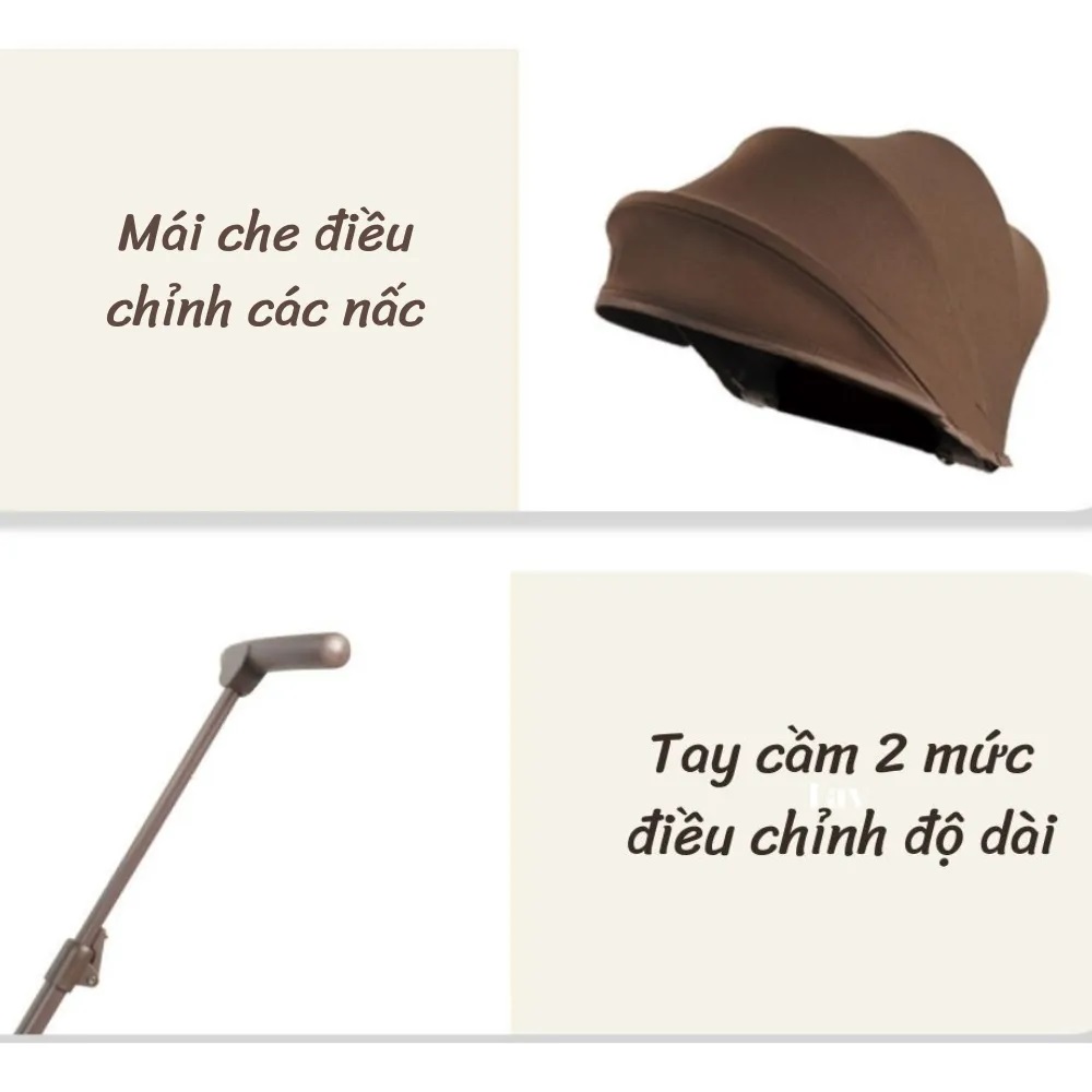 Chào mừng ba mẹ đến với thế giới của sự tiện nghi và an toàn tối ưu cho bé yêu cùng xe đẩy vừa nằm vừa ngồi cho bé Luxury MySun cao cấp! MySun tin rằng sản phẩm này không chỉ là một chiếc xe đẩy cho em bé sơ sinh thông thường mà còn là người bạn đồng hành đáng tin cậy trong suốt những năm tháng đầu đời của bé, từ sơ sinh đến 4 tuổi. Với thiết kế thông minh, khả năng gấp gọn tiện lợi và chất liệu cao cấp, xe đẩy cho trẻ sơ sinh MySun Luxury mang đến trải nghiệm tuyệt vời cho ba mẹ và bé. Từ những chuyến đi dạo công viên, đến những buổi mua sắm hay du lịch, chiếc xe đẩy cho em bé gấp gọn Luxury giúp ba mẹ dễ dàng di chuyển mà không lo lắng về sự an toàn hay thoải mái của bé. MySun còn thiết kế đặc biệt để sản phẩm phù hợp với xe đẩy cho em bé từ 1 2 3 4 5 6 tháng tuổi và các bé lớn hơn, đảm bảo sự nâng đỡ êm ái và an toàn tuyệt đối. ƯU ĐIỂM XE ĐẨY VỪA NẰM VỪA NGỒI CHO EM BÉ SƠ SINH 1 2 3 4 TUỔI LUXURY MYSUN 1. Khung xe đẩy cho em bé làm bằng thép carbon cao cấp chịu tải 25kg. 2. Bánh trước lò xo, xoay 360 độ giúp xe đẩy em bé chạy êm ái. 3. Bánh sau xe đẩy có khóa cố định cho em bé vừa nằm vừa ngồi an toàn. 4. Xe đẩy gấp gọn hay mở ra chỉ bằng 1 thao tác 1 tay đơn giản. 5. Xe có 2 lớp vải, lớp ngoài Oxford siêu bền, lớp trong poly thoáng khí. 6. Xe đẩy MySun có đệm lót cao cấp cho em bé từ 1 2 3 4 5 6 tháng tuổi nằm êm ái. 7. Mái che xe đẩy gấp gọn vải oxford chống nước chống tia UV cho em bé. 8. Xe đẩy vừa nằm cho bé sơ sinh, vừa ngồi cho trẻ em 1 2 3 4 tuổi. 9. Đai 5 điểm an toàn cho em bé sơ sinh nằm và trẻ 1 2 3 4 tuổi ngồi. 10. Có khay đựng cốc, túi sau, giỏ đựng đồ cho ba mẹ và bé tiện lợi.