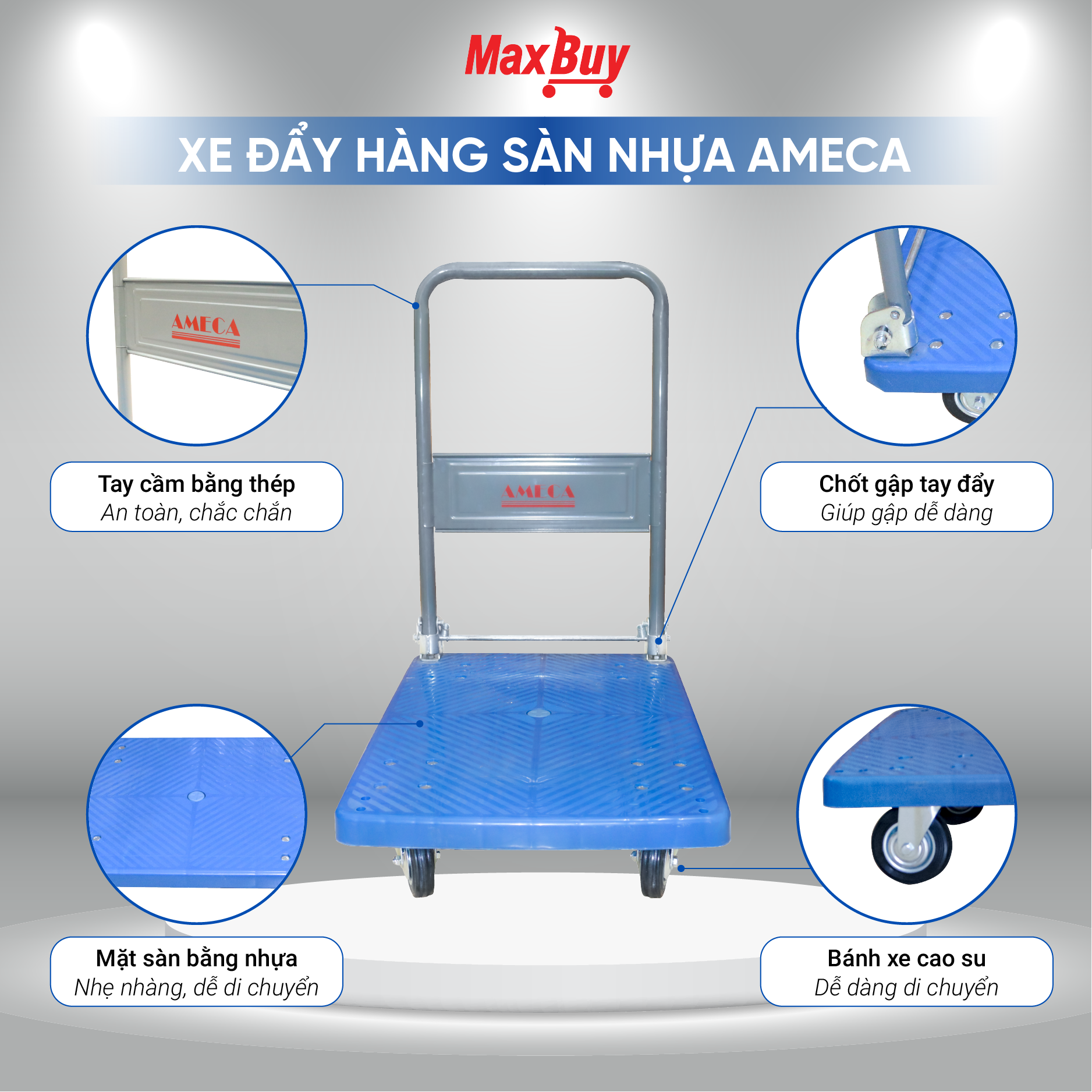 TIÊU CHUẨN CHẤT LƯỢNG XE ĐẨY HÀNG AMECASản phẩm xe đẩy hàng chuyên dụng AMECA chính hãng, được sản xuất theo đúng tiêu chuẩn công nghệ hiện đại của châu Âu, với có đầy đủ các chứng nhận CO, CQ. Xe đ...