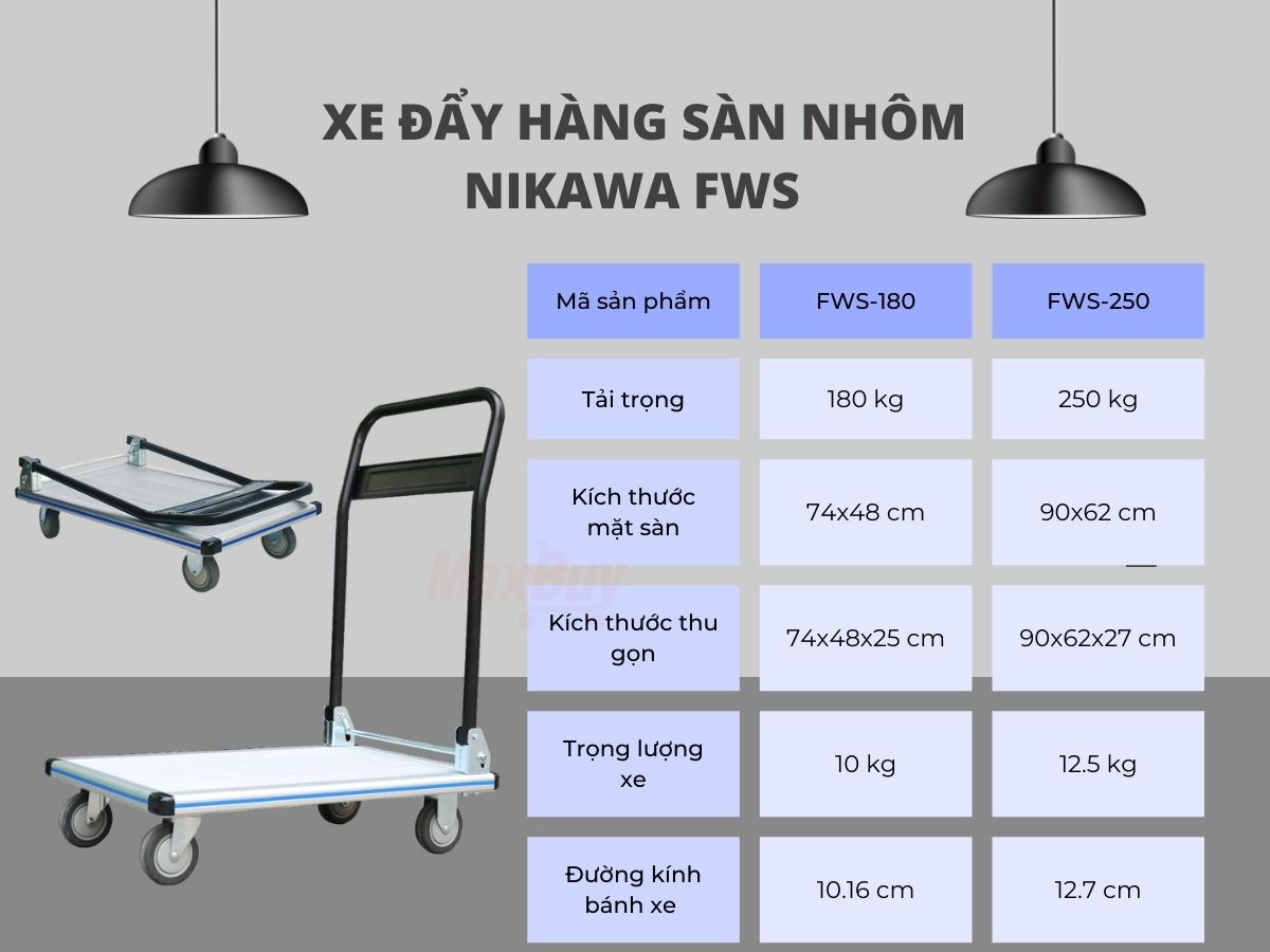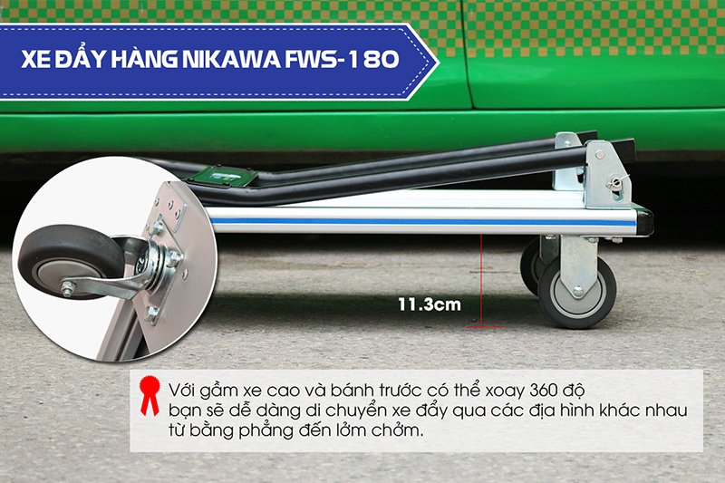 ✨Xe đẩy hàng 4 bánh chống ồn Nikawa FWS-180 sàn nhôm tay cầm thép gấp mở tiện lợi tải trọng 180kg