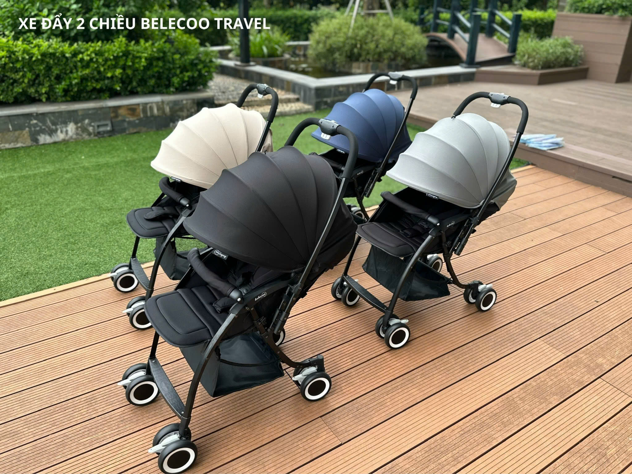 Xe đẩy Belecoo Travel 2 chiều 3 tư thế siêu nhẹ ️ Xe dáng thể thao gầm cao chống bụi và được làm bằng hợp kim nhôm vô cùng vững chắc, chịu trọng lượng lên