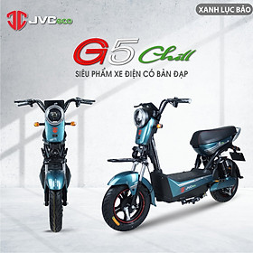 Mua tại TiktokJVC G5 CHILL XE ĐIỆN CÓ BÀN ĐẠP ️ JVC G5 CHILL được thiết kế theo phong cách HIỆN ĐẠI, TINH TẾ mang tới sự tự tin cho người lái ƯU ĐIỂM NỔI BẬT CỦA JVC G5 CHILL Bàn đạp trợ lực hỗ trợ hành trình di chuyển Bộ tem mới thiết kế THỜI TRANG Đèn pha dạng tròn góc sáng rộng hơn Tay ga, công tắc, tay phanh cao cấp đến từ thương hiệu Wuxing Đồng hồ dẹt hiển thị thông minh Yên xe êm ái in dấu ấn logo JVC Động cơ mới kết hợp với bộ điều khiển không dây Ắc quy được bổ sung thanh giằng bình chắc chắn tuyệt đối, tháo lắp dễ dàng hơn Vành trước nhập khẩu có thiết kế riêng biệt đồng bộ với động cơ Giam xóc sau nâng cấp chất lượng, bảo hành 12 tháng Động cơ và khung xe bảo hành 36 tháng Bình ắc quy bảo hành 18 tháng