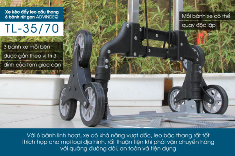 Mua tại TiktokUnbox xe kéo đẩy leo cầu thang 6 bánh rút gọn Advindeq TL-35/70 | META.vn