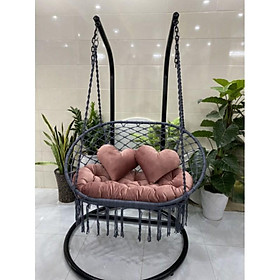 Bộ sản phẩm gồm : + Bộ nệm và 02 gối hình trái tim màu hồng + Thân lồng xích đu được sơn tĩnh điện và được đan nhựa giả mây màu hồng như hình