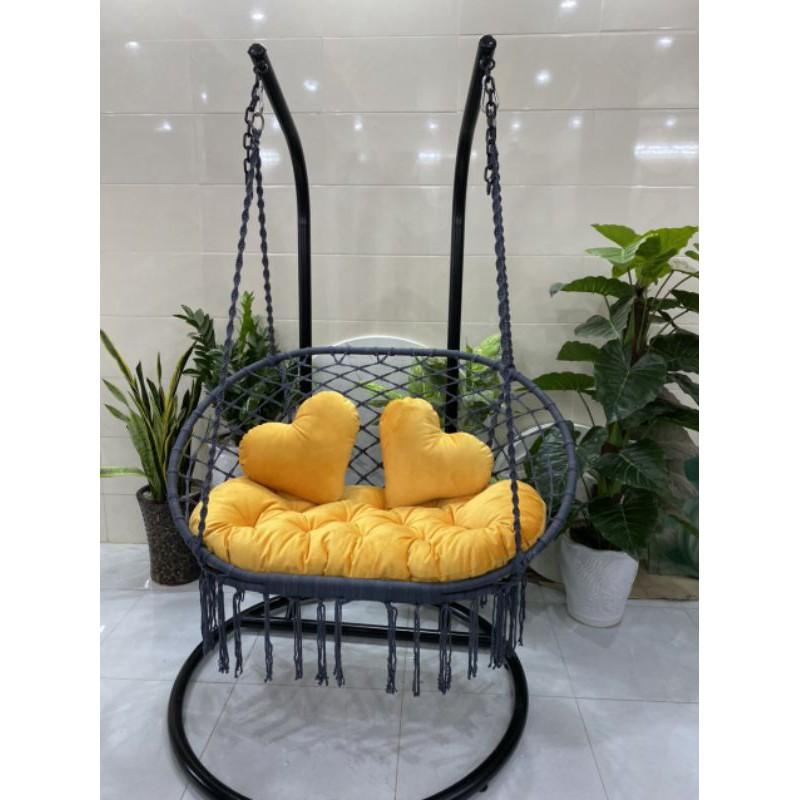 Bộ sản phẩm xích đu gồm : 1 xích đu + 1 nệm và 2 gối trái tim màu sắc như hình Tính thẩm mỹ được khẳng định rõ nét trong không gian ngôi nhà