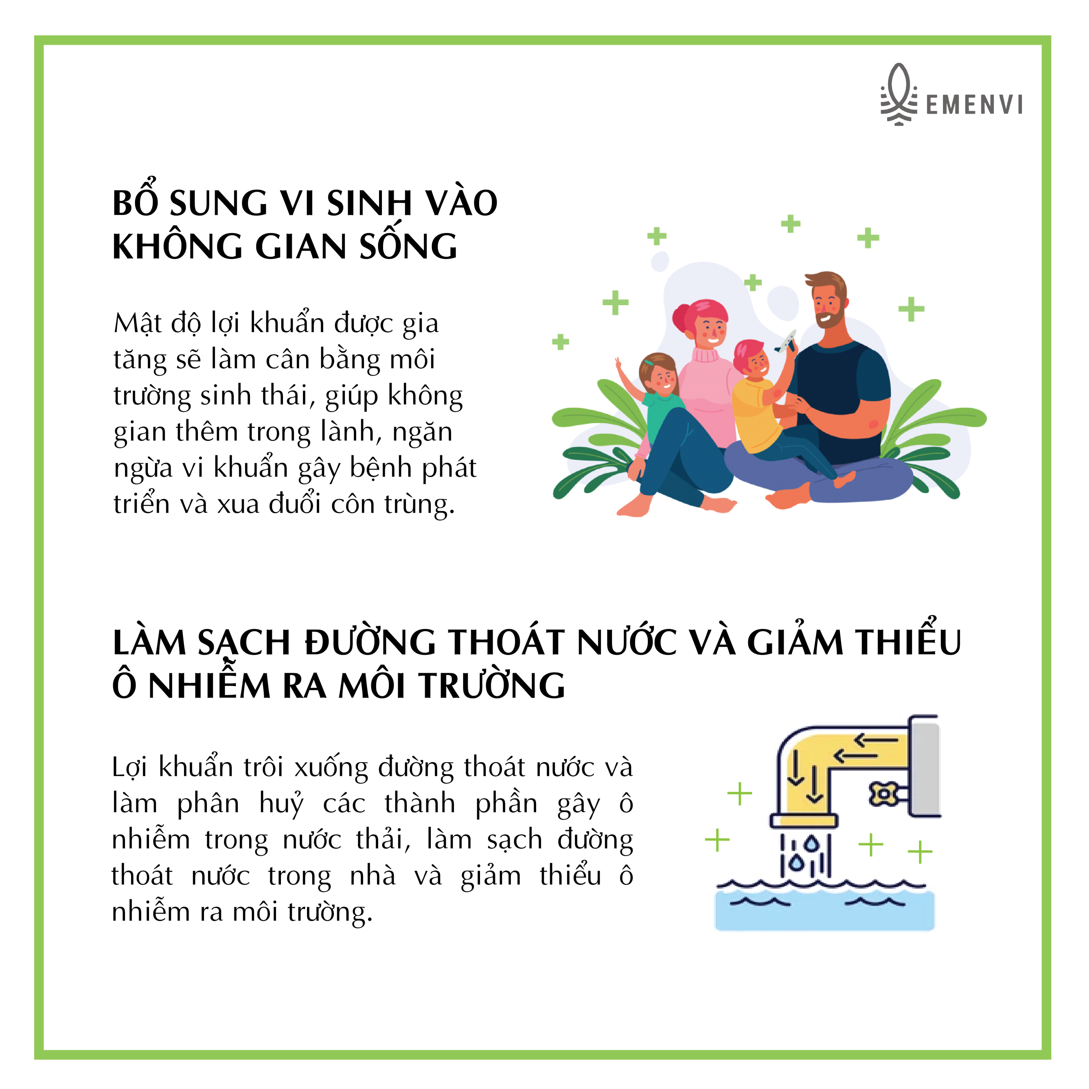 - Độ pH<5 của các lợi khuẩn là axit tự nhiên giúp tiêu diệt & loại trừ nhanh chóng các hại khuẩn, Hệ vi sinh có lợi giúp phân huỷ và xử lý triệt để các mùi hôi khó chịu, mùi lạ mảng bám, đặc biệt là nấm mốc lâu ngày.