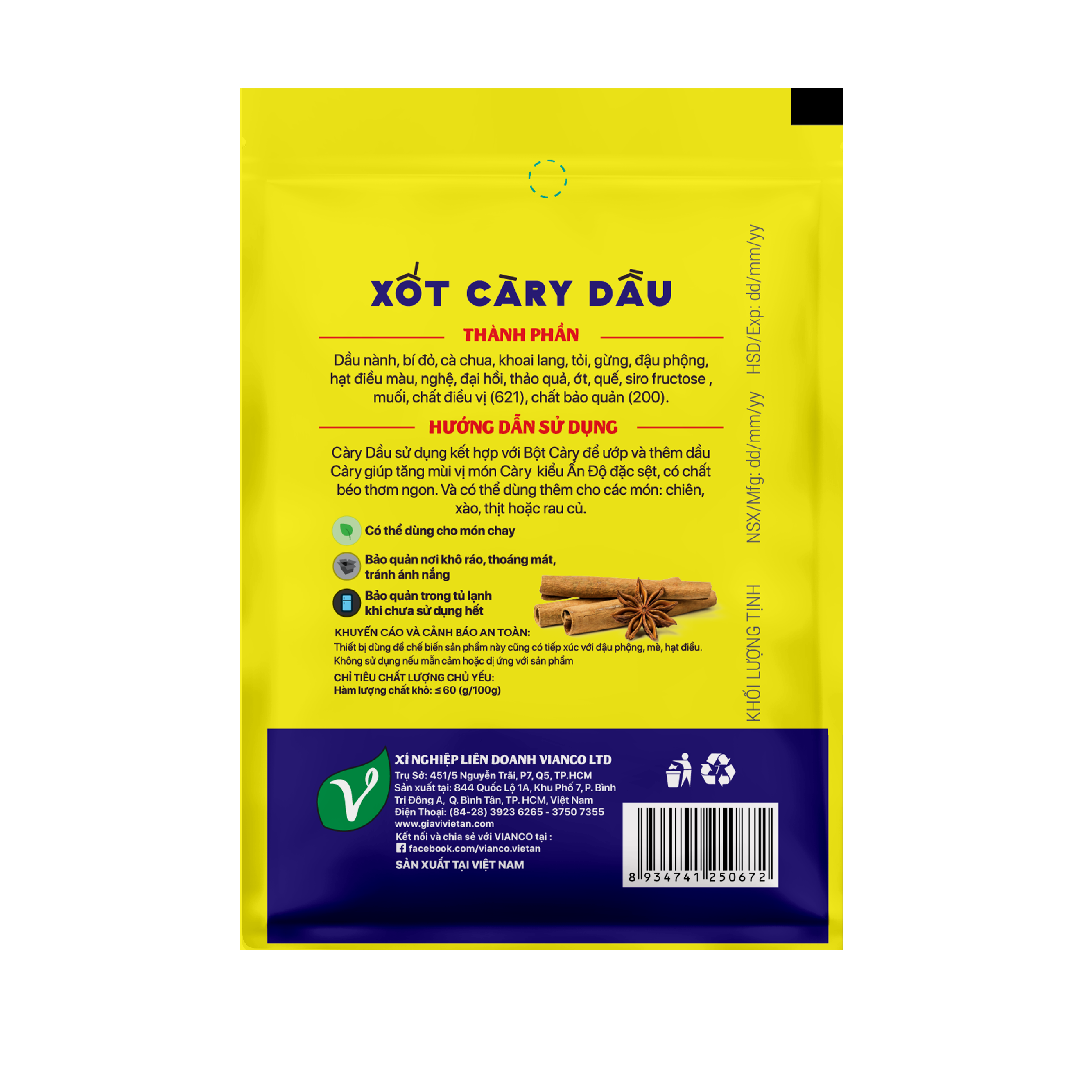 - Cách dùng : Xốt Cà Ry Dầu Việt Ấn kết hợp với Bột Cà Ry Việt Ấn để ướp và giúp tăng mùi vị món cà ry có độ sệt và tăng vị béo thơm ngon. Sản phẩm có thể dùng thêm cho các món : chiên, xào, thịt hoặc rau củ. CÓ THỂ SỬ DỤNG CHO MÓN CHAY.
