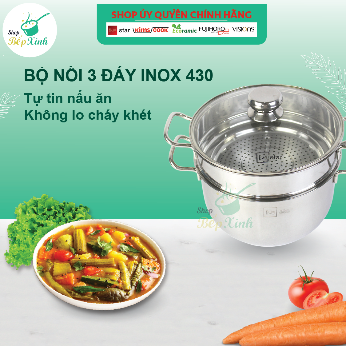 Bộ nồi xửng hấp Inox 3 đáy Fivestar 30cm bền đẹp, bảo hành 5 năm chuẩn hàng Việt Nam chất lượng cao