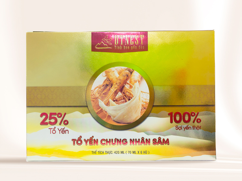 Mua tại TiktokTHÔNG TIN SẢN PHẨM Tổ yến chưng nhân sâm DT NEST Khánh Hòa kết hợp 25% Yến nguyên chất làm từ Sợi Yến Thật 100% Nhân sâm được xem là sản phẩm bồi bổ sức khỏe nhanh chóng, kết hợp với tổ yến DTNEST Khánh Hòa thì chẳng khác nào là sự kết hợp hoàn hảo giữa sâm và yến Mùi nhân sâm thơm lừng đặc trưng, sợi yến bổ dưỡng hoà quyện trong nước nhân sâm đã tiết ra, làm cho người dùng cảm giác sảng khoái và tỉnh táo hơn khi sử dụng THÀNH PHẦN: 25% tổ yến, đường phèn, nhân sâm, nước tinh khiết - Tổ yến: Bổ huyết, đẹp da, chống lão hóa