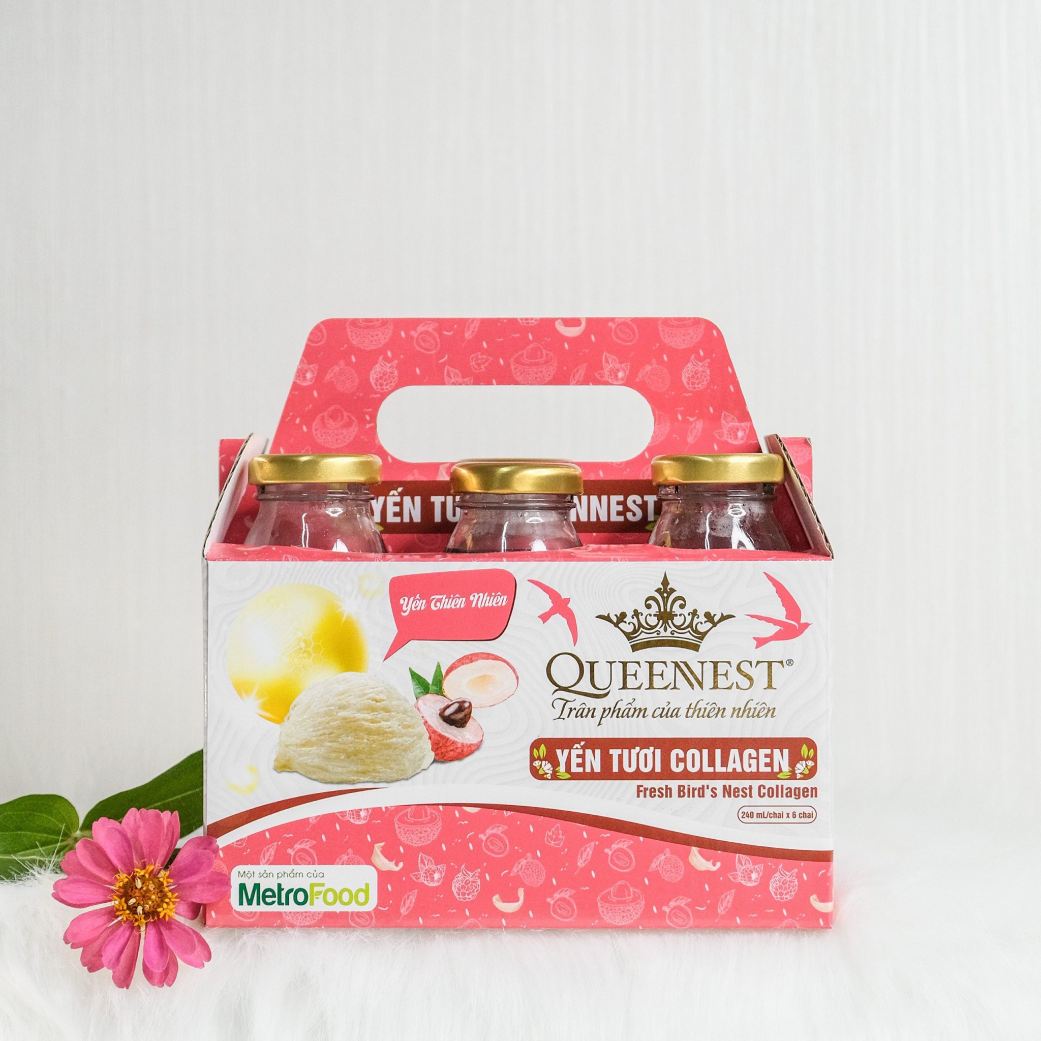 ✨Yến tươi Queennest chai 240ml - hộp 6 chai - 5 vị: Hạt Chia, Hồng Sâm, Collagen, Vanilla, Nha Đam - Hàng Chính Hãng